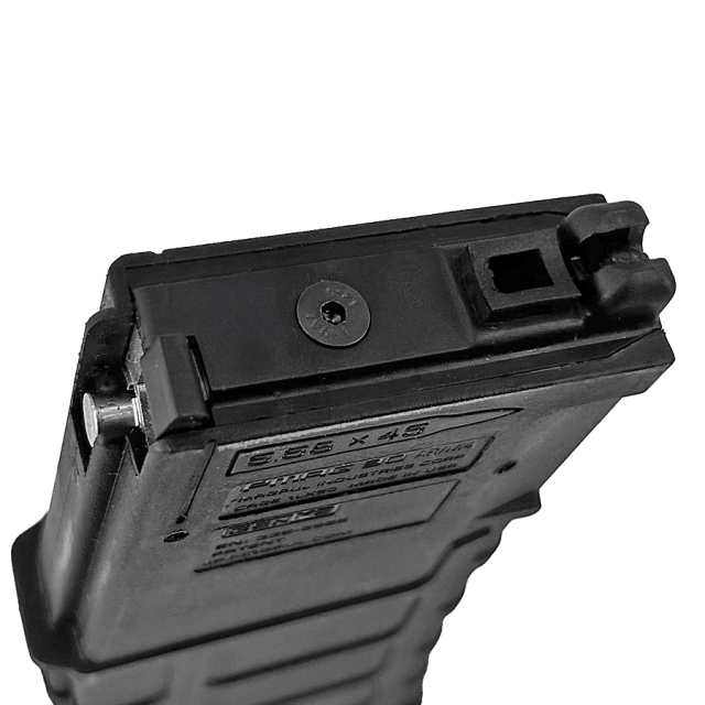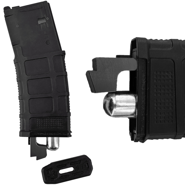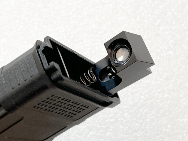 12g CO2カートリッジ規格対応。樹脂製マガジンシェル、アルミCNCインナーハウジングを採用。