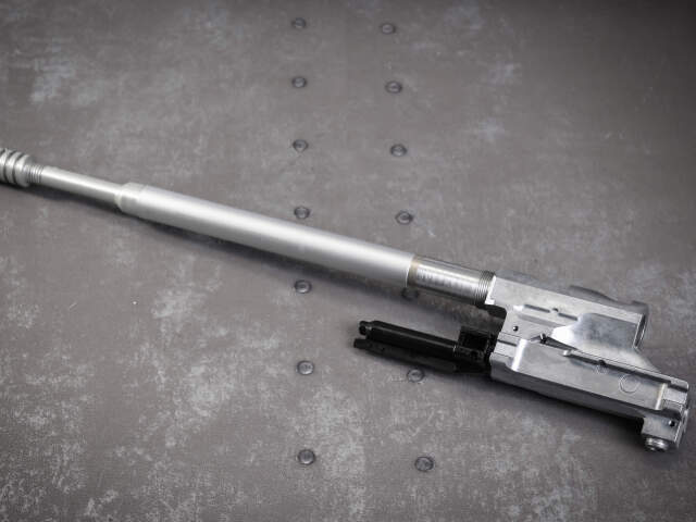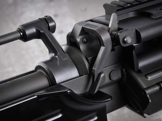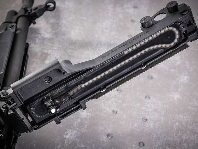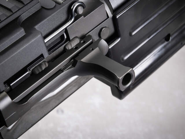 シミュレーションに徹した実物同様のオープンボルト撃発仕様で、ハイパフォーマンスのアルミ製ボルトキャリアーが実装されています。