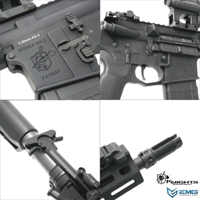 ダイキャストパーツを中心とした普及価格帯のエアソフトガンと比べ、ハイエンドライフルであるKAC KS3らしくかっちりとした精密な仕上がりとなっています。